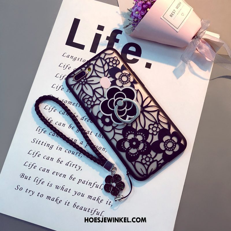 Oppo R11s Hoesje Mobiele Telefoon Eenvoudige Zwart, Oppo R11s Hoesje Bloemen Hoes