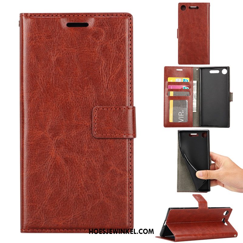 Sony Xperia Xz1 Compact Hoesje Bescherming Anti-fall Folio, Sony Xperia Xz1 Compact Hoesje Hoes Mobiele Telefoon Braun