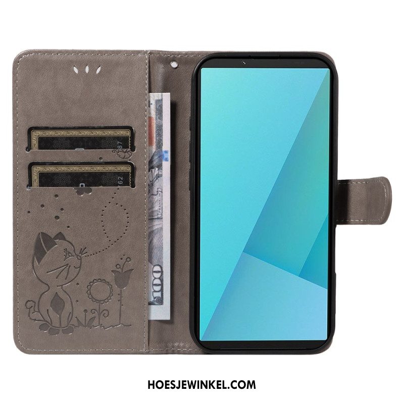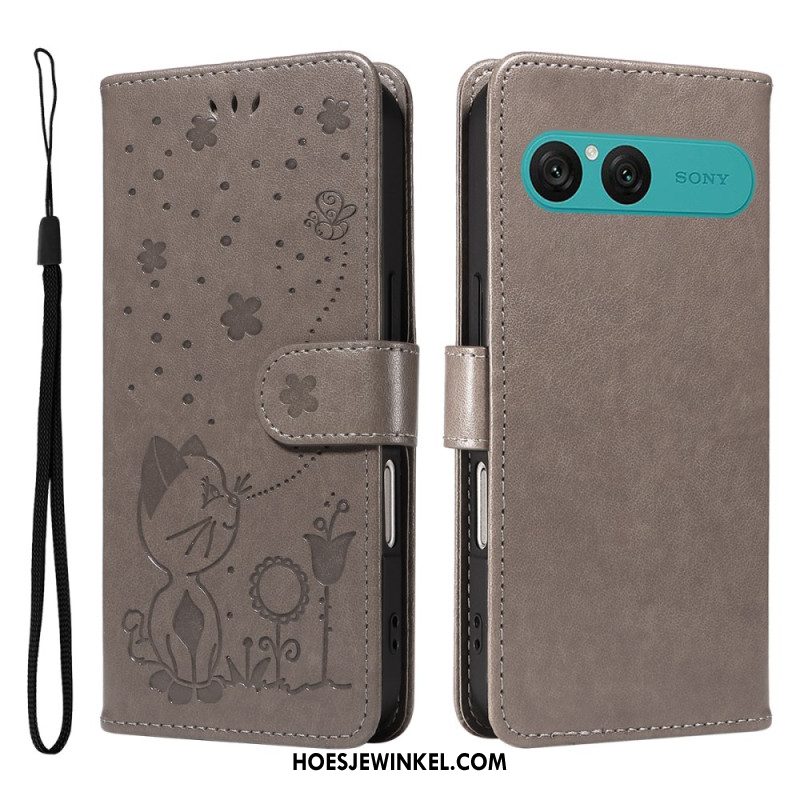 Folio-hoesje Sony Xperia 10 Vii Sleutelkoord Met Grijze Kat