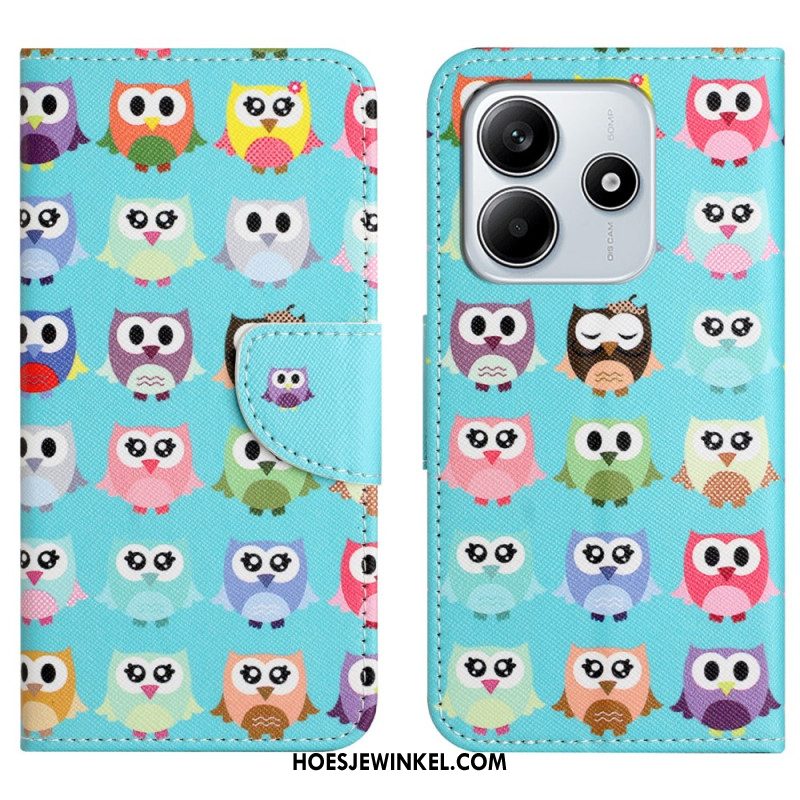 Leren Hoesje Voor Xiaomi Redmi Note 14 4g Slapende Uil