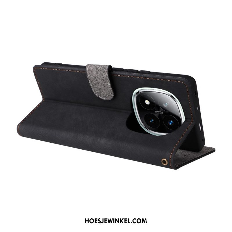 Leren Hoesje Voor Xiaomi Redmi Note 14 Pro 4g Rfid-blokkerende Portemonnee Met Tweekleurig Suède-effect