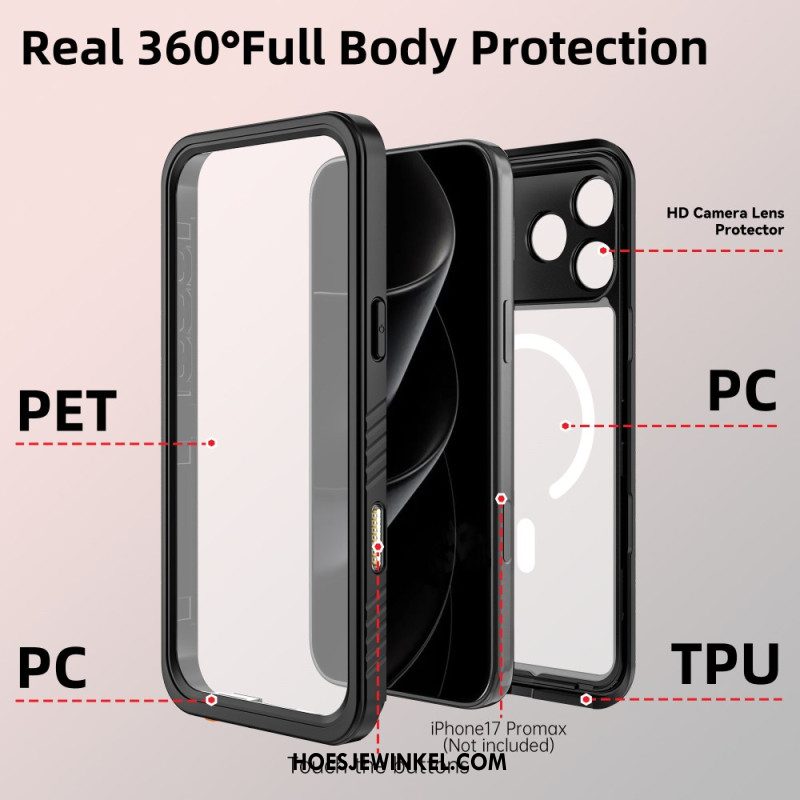 Case Hoesje iPhone 17 Pro Max Telefoonhoesje Transparante Magsafe-compatibele Waterdichte Ip68-houder