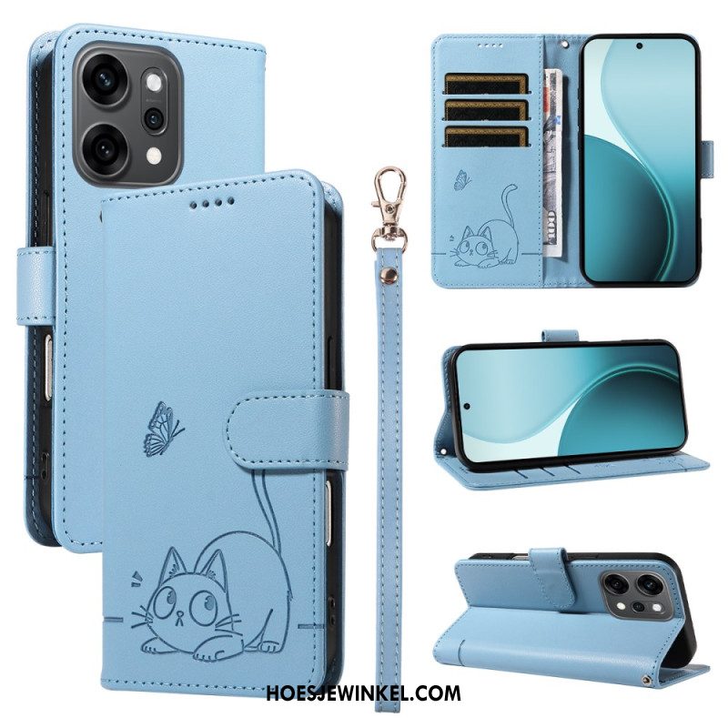 Leren Hoesje Voor Oppo Reno 14 Pro 5g Rfid-blokkering Met Bandje