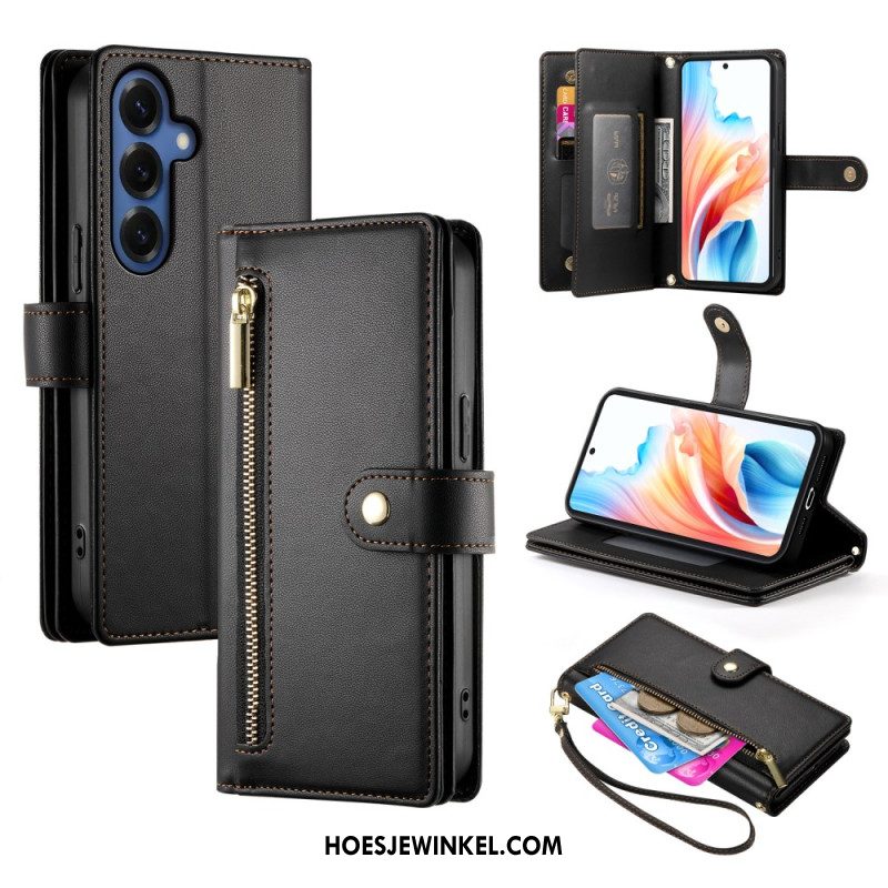 Flip Case Leren Samsung Galaxy S26 Vak Met Rits En Schouderbanden