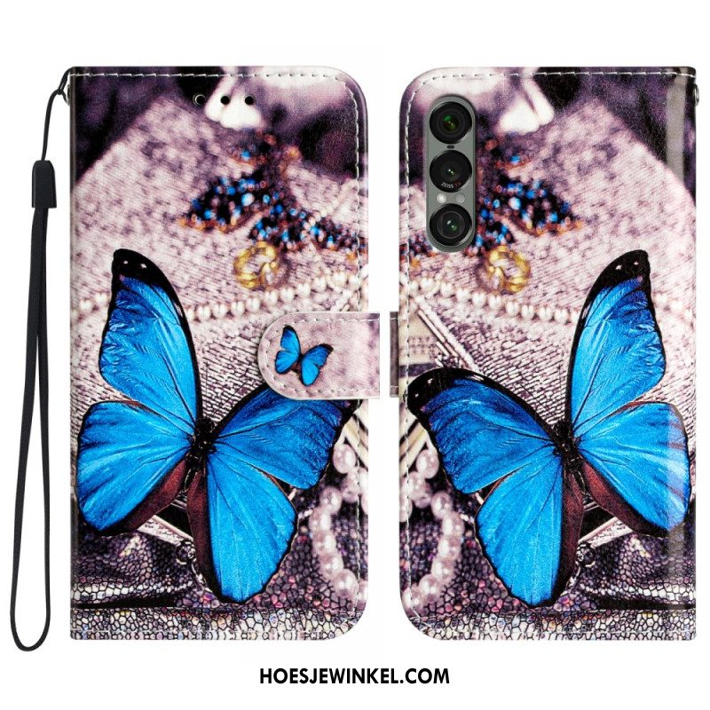 Bescherming Hoesje Sony Xperia 1 Vii Lederlook Met Koord