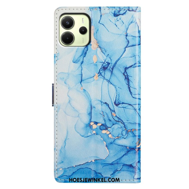 Leren Hoesje Voor Xiaomi Redmi Note 14 4g Blauw Bloemenpatroon