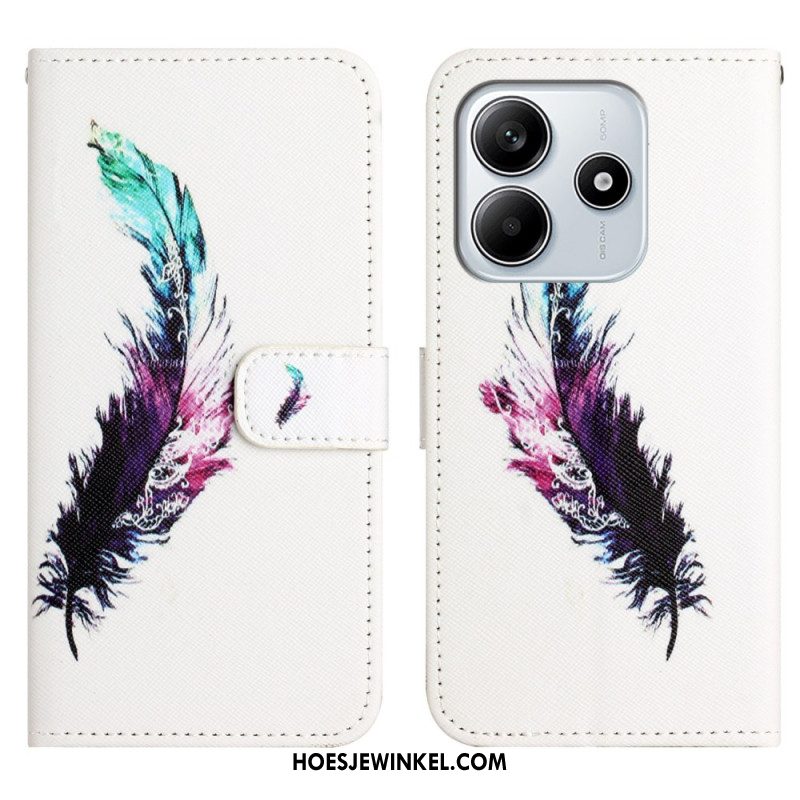 Flip Case Leren Xiaomi Redmi Note 14 4g Kleurrijke Veren