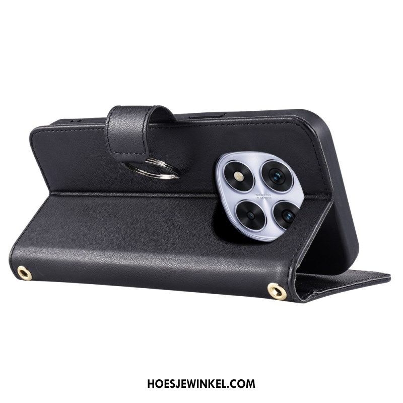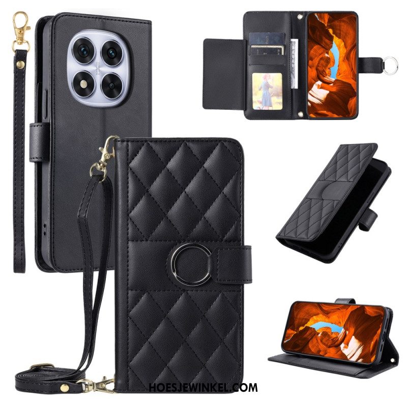 Flip Case Leren Xiaomi Redmi Note 14 Pro Plus 5g Gewatteerd Met Bandje En Schouderband