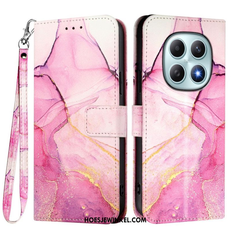 Flip Case Leren Xiaomi Redmi Note 15 5g Marmerpatroon Met Bandje
