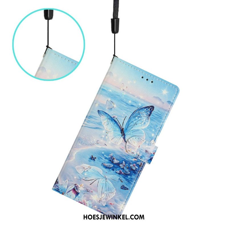 Leren Hoesje Voor Xiaomi Redmi Note 15 5g Blauwe Vlinder