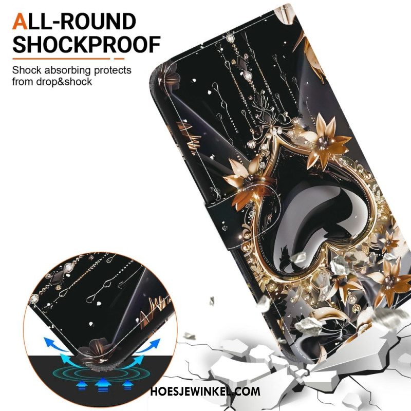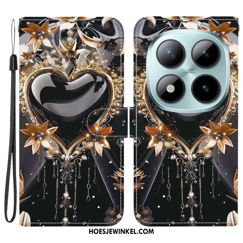 Flip Case Leren Xiaomi Redmi Note 15 Pro 5g Zwart En Goud Hart