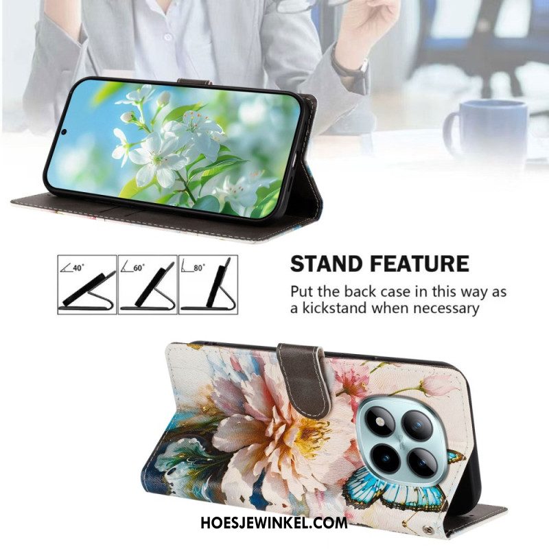Leren Hoesje Xiaomi Redmi Note 15 Pro Plus 5g Grafisch Vlinder Bescherming Hoesje