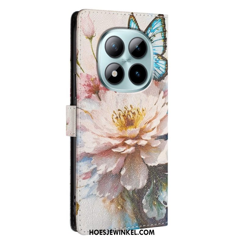 Leren Hoesje Voor Xiaomi Redmi Note 15 Pro Plus 5g Bloemen En Blauwe Vlinders