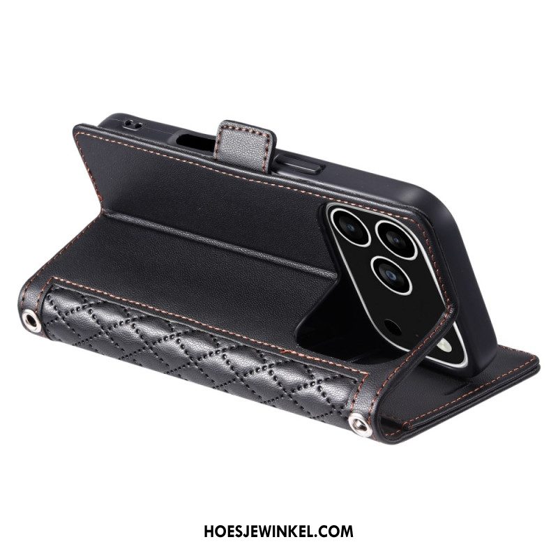 Flip Case Leren iPhone 17 Pro Retro Portemonnee Met Schouderband