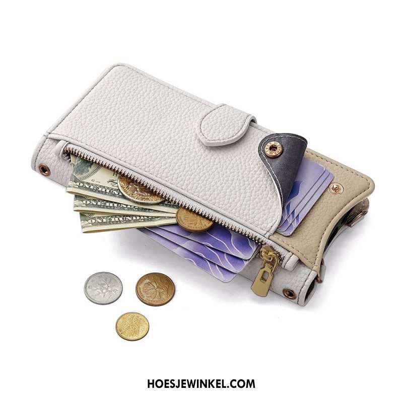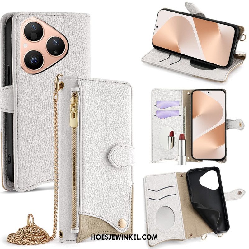 Leren Hoesje Huawei Pura 80 Tweekleurig Met Spiegel En Ketting
