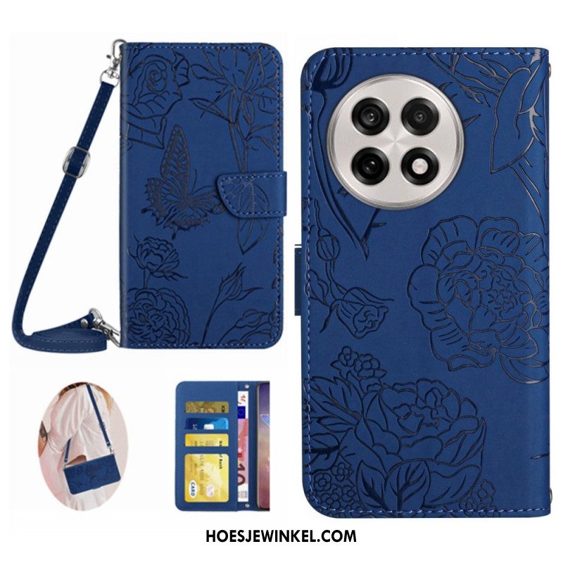 Folio-hoesje Oneplus 13r Telefoonhoesje Schouderbandje Met Vlinderpatroon