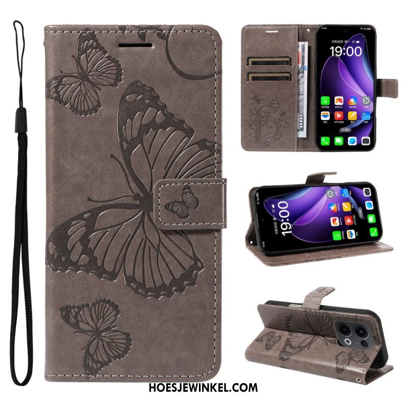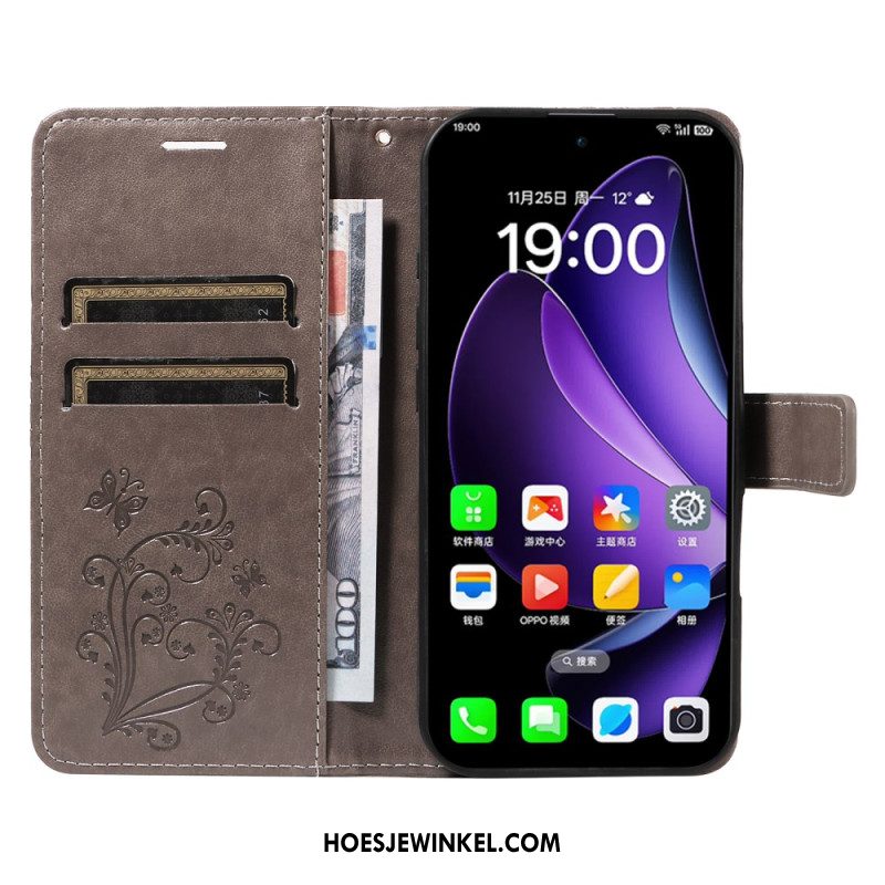 Flip Case Leren Oppo Reno 13 5g Opdruk Vlinder Schouder Tas