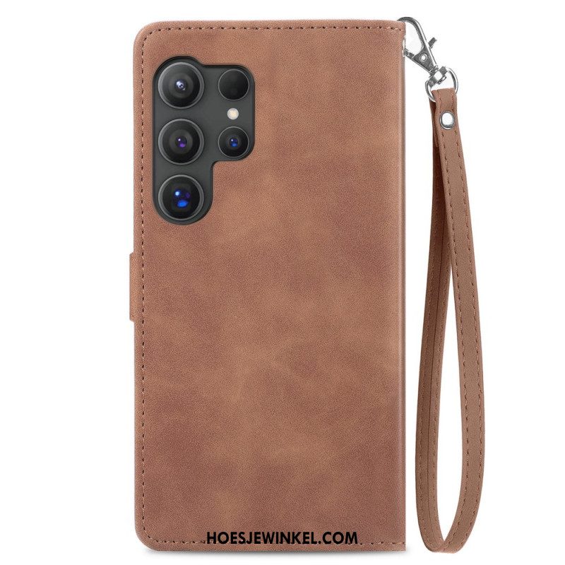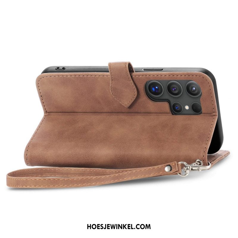 Flip Case Leren Samsung Galaxy S25 Ultra 5g Klassieke Lederlook Met Bandje