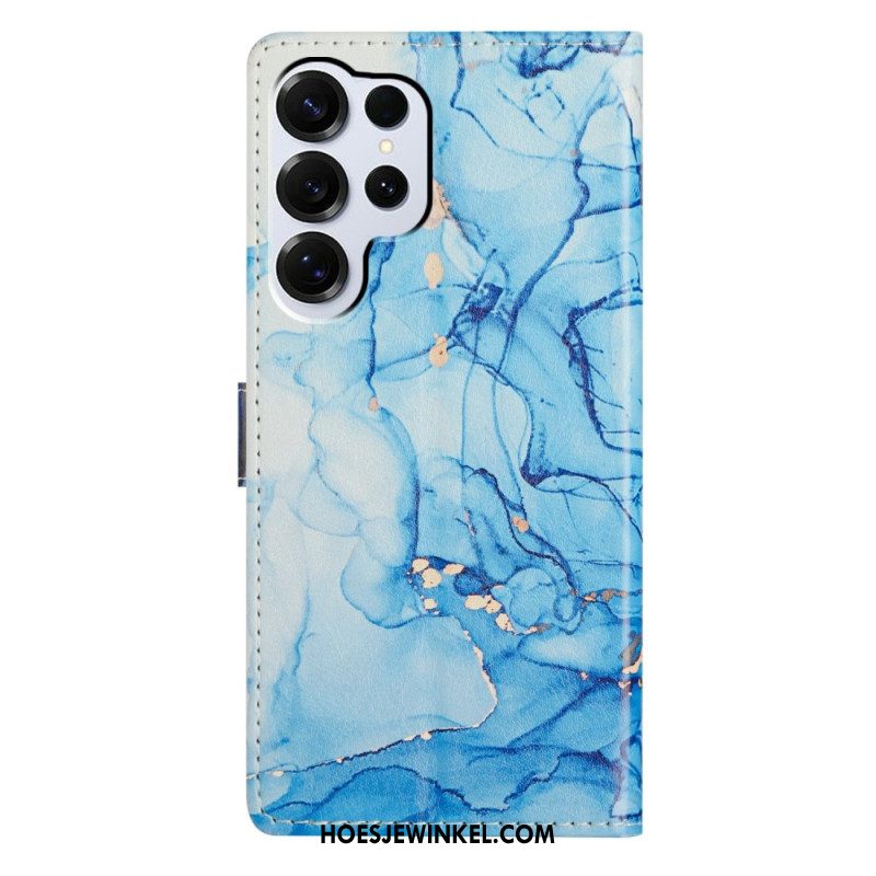 Leren Hoesje Samsung Galaxy S26 Ultra Blauw Marmer Effect