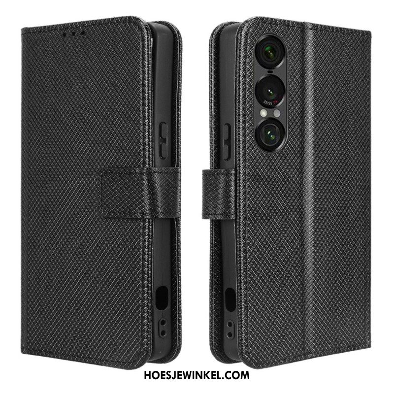 Leren Hoesje Sony Xperia 1 Vii Rasterpatroon Bescherming Hoesje