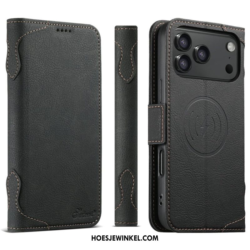 Folio-hoesje Voor iPhone 17 Pro Magsafe-compatibel Vintage Ontwerp