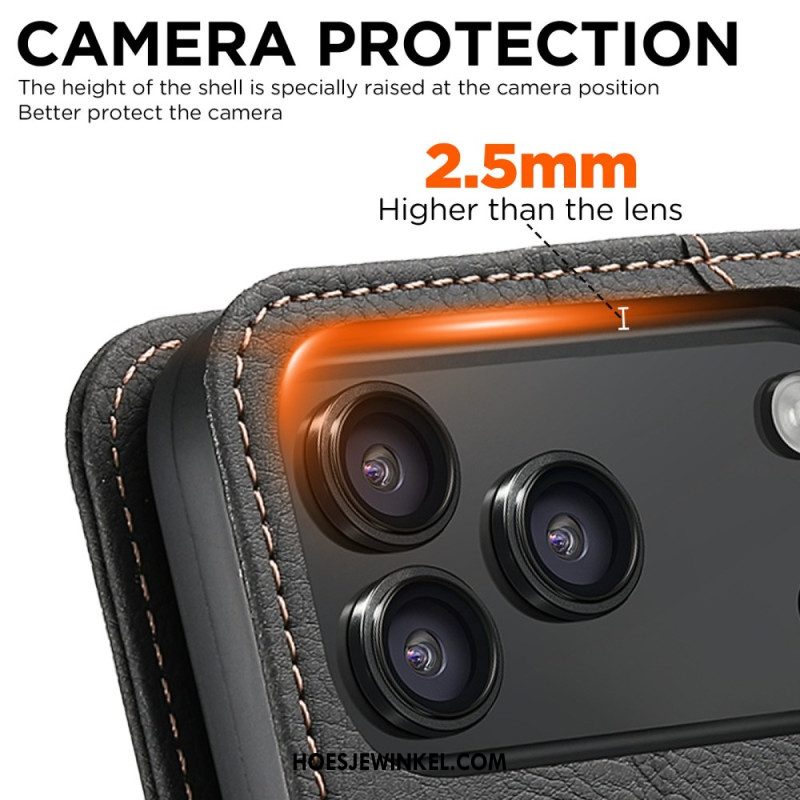 Folio-hoesje Voor iPhone 17 Pro Magsafe-compatibele Lychee-textuur