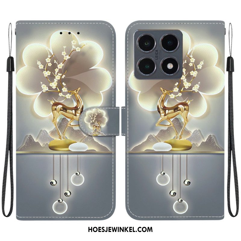 Leren Hoesje Voor Xiaomi 15t Gouden Leeuw