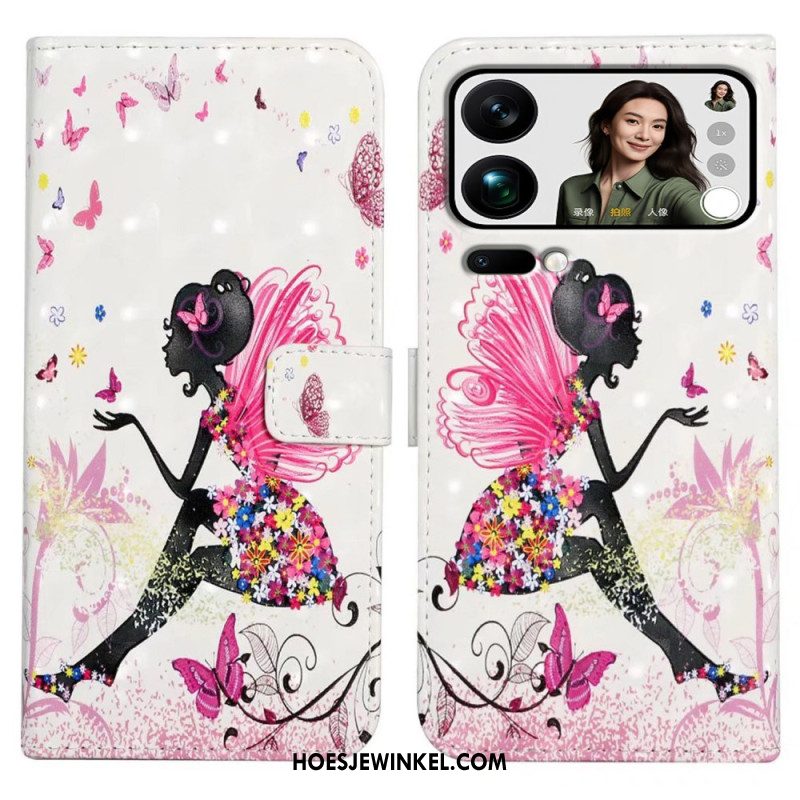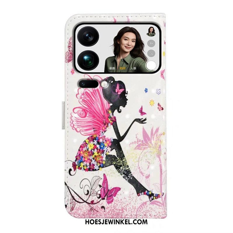 Leren Hoesje Voor Xiaomi 17 Pro Max Vlinder- En Bloemenpatroon