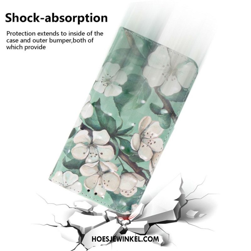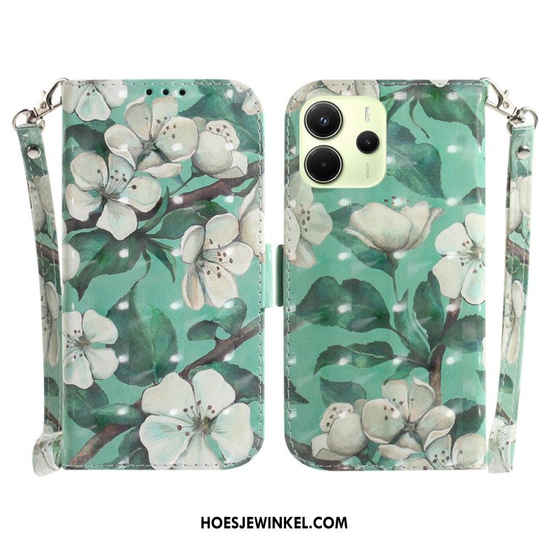 Leren Hoesje Xiaomi Redmi Note 14 4g Paarse En Witte Bloemen