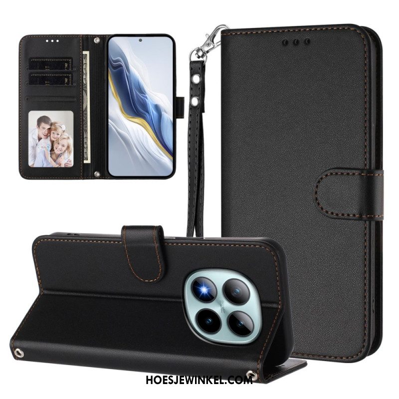 Folio-hoesje Xiaomi Redmi Note 15 Pro Plus 5g Telefoonhoesje Effen Leer-effect Met Bandje
