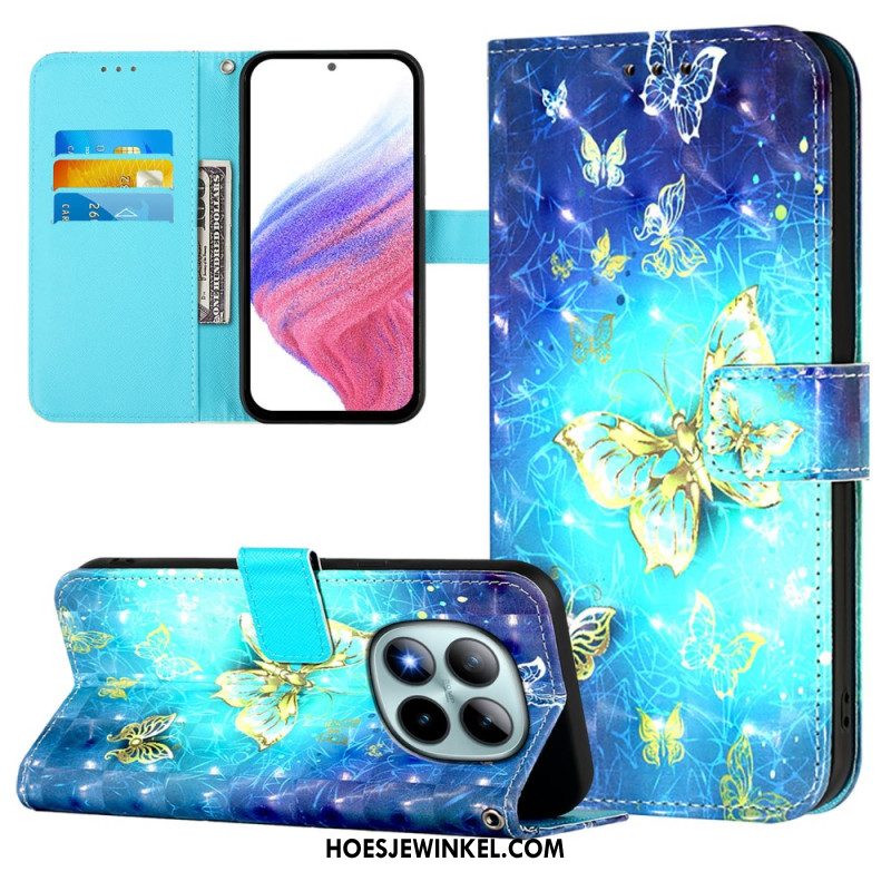 Folio-hoesje Xiaomi Redmi Note 15 Pro Plus 5g Telefoonhoesje Gouden Vlinders
