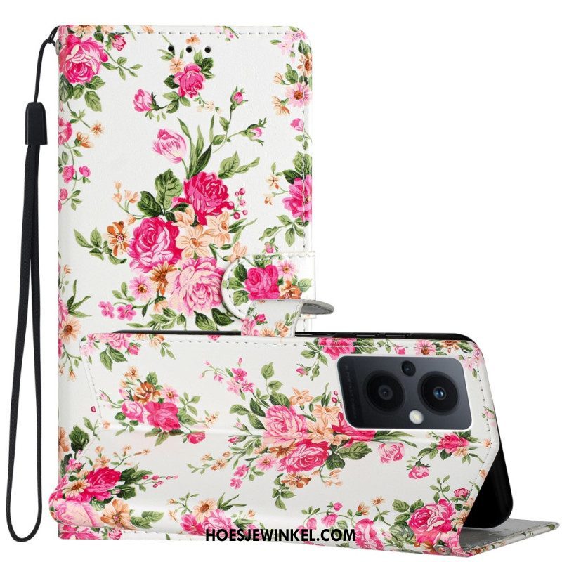 Folio-hoesje voor Oppo Reno 8 Lite Met Ketting Marmer Strippen