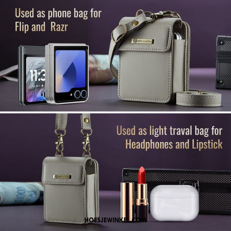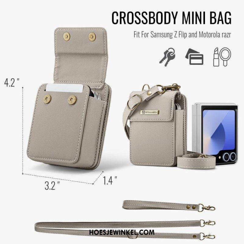 Cover Hoesje Samsung Galaxy Z Flip 7 Fe Telefoonhoesje Kunstleren Rand Met Schouderband