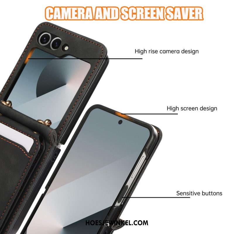 Hoesje Case Samsung Galaxy Z Flip 7 Kaarthouder En Schouderband Met Lederlook