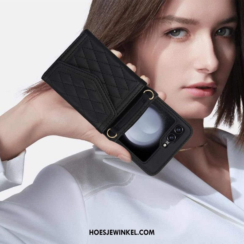 Hoesje Samsung Galaxy Z Flip 7 Fe Kaarthouder Schouderband En Draagkoord Bescherming Hoesje