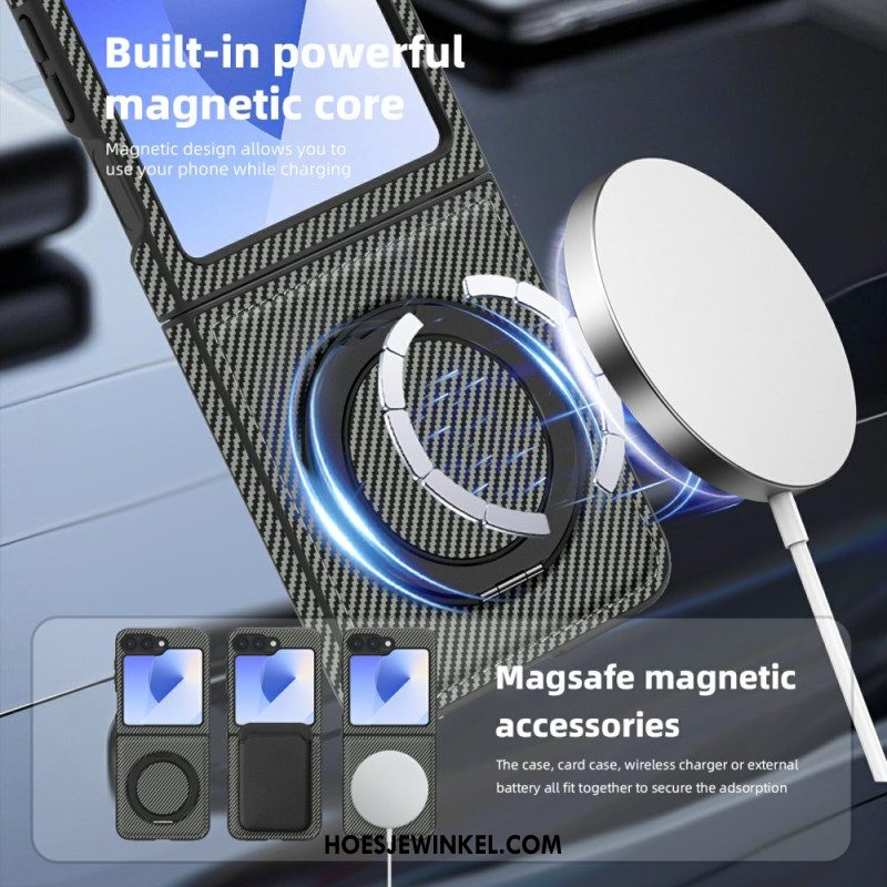 Hoesje Samsung Galaxy Z Flip 7 Fe Magnetisch Met Koolstofvezel En Standaard