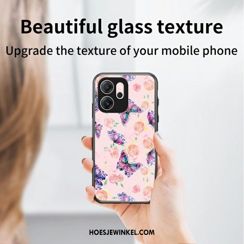Hoesje Oppo Reno 14f 5g Bloemenpatroon Gehard Glas