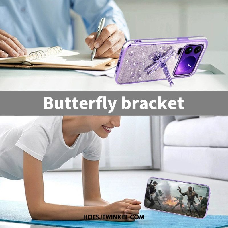 Flip Case Leren Xiaomi 17 Pro Max Vlinders En Diamanten