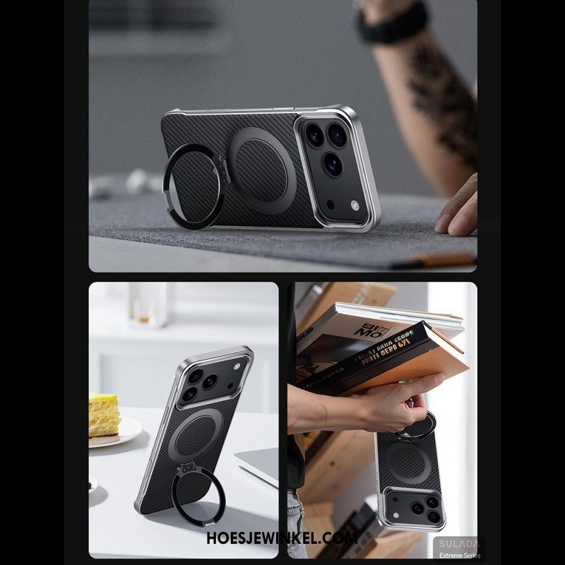 Hoesje iPhone 17 Pro Magsafe Draaibare Houder En Koolstofvezel