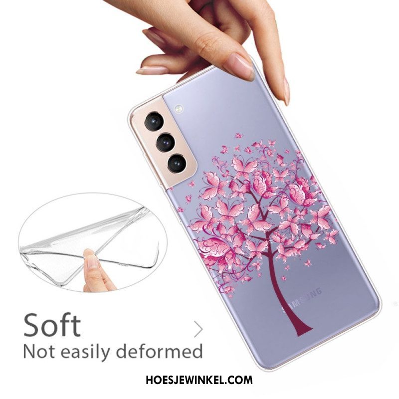 Hoesje voor Samsung Galaxy S22 5G Paars Vlinder Gehard Glas