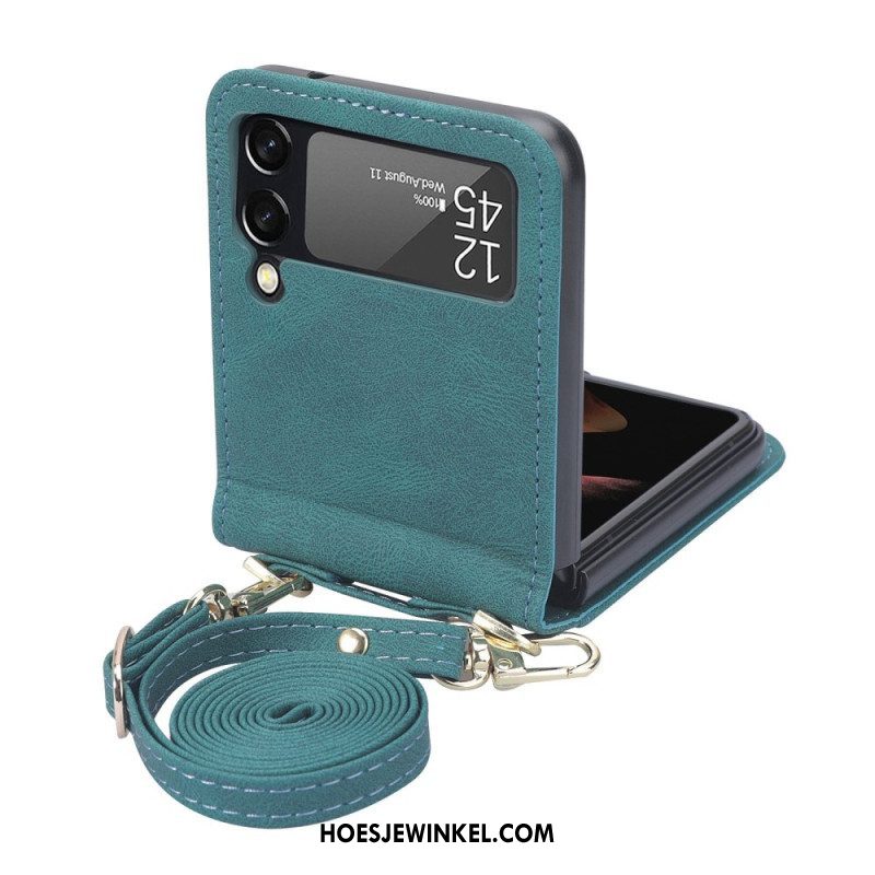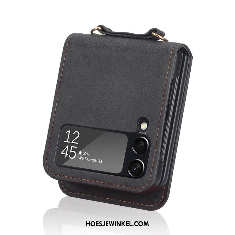 Hoesje voor Samsung Galaxy Z Flip 4 Folio-hoesje Ledereffect Stiksels En Schouderriem