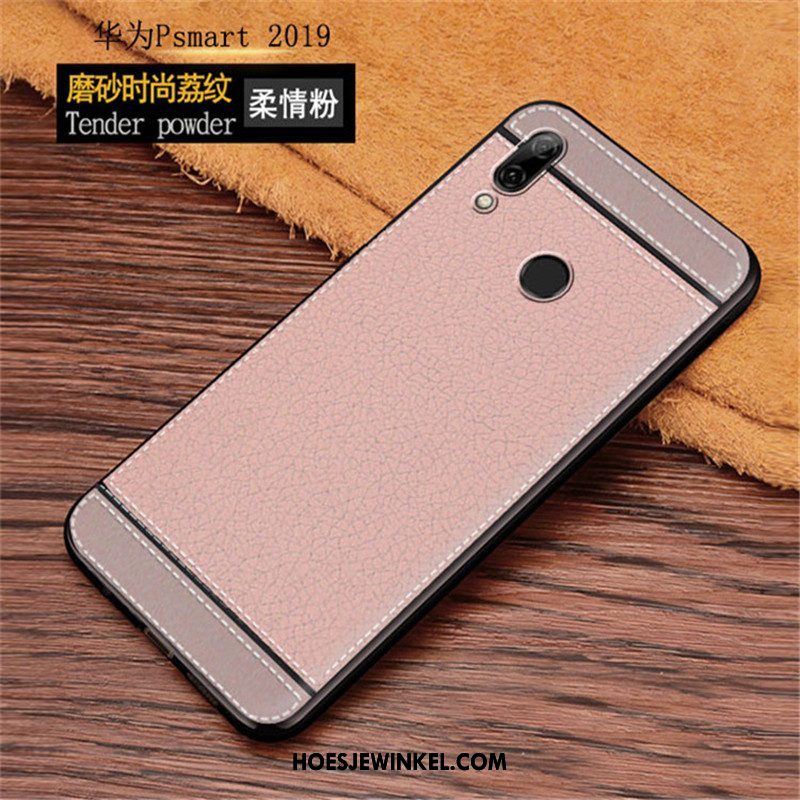 Huawei P Smart 2019 Hoesje Katoen En Linnen Bescherming All Inclusive, Huawei P Smart 2019 Hoesje Roze Echt Leer