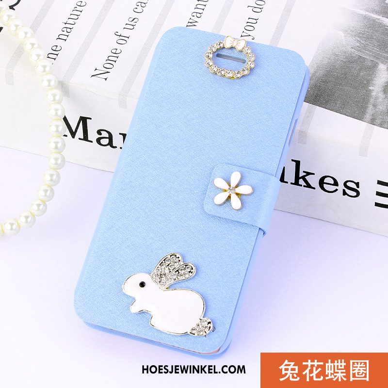 Huawei Y6 2018 Hoesje Blauw Hoes Mobiele Telefoon, Huawei Y6 2018 Hoesje Folio Leren Etui