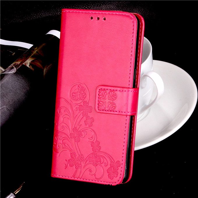 Huawei Y6 Pro 2017 Hoesje Hoes Patroon All Inclusive, Huawei Y6 Pro 2017 Hoesje Rood Leren Etui