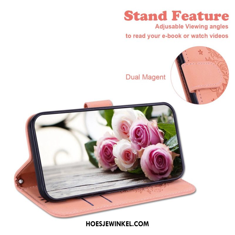 Flip Case Leren Oppo Reno 13 Pro 5g Gouden Pioenroos