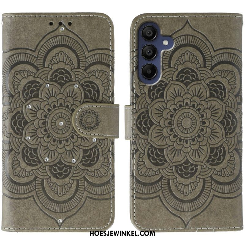 Leren Hoesje Samsung Galaxy A17 4g / 5g Mandala Met Strasssteentjes Bescherming Hoesje