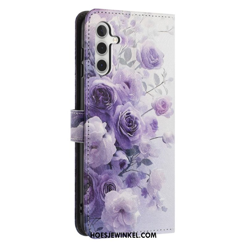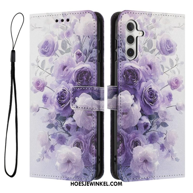 Leren Hoesje Samsung Galaxy A17 4g / 5g Paardenbloemen Met Koord