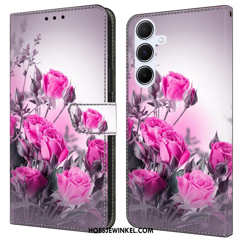 Leren Hoesje Samsung Galaxy A17 4g / 5g Roze Bloemen