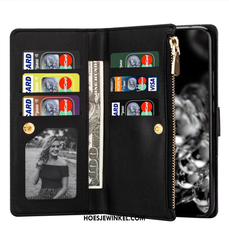 Leren Hoesje Samsung Galaxy S25 5g Edge Portemonnee Met Paillettenband Bescherming Hoesje