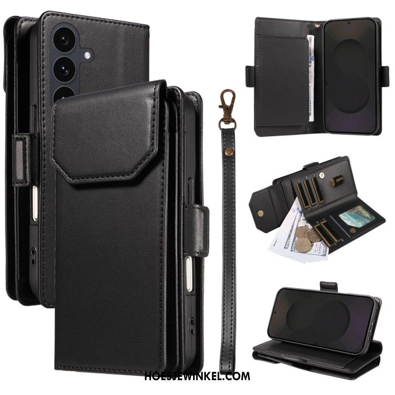 Leren Hoesje Samsung Galaxy S25 Fe Kaarthouder En Polsbandje Bescherming Hoesje